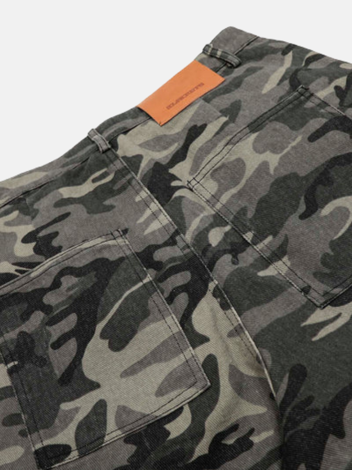Os Jorts Camo Wide Leg Knee Length “Specter” trazem frescor, amplitude e personalidade para o verão. Produzidos em algodão leve, garantem conforto térmico mesmo nos dias mais quentes. A modelagem wide leg com comprimento até o joelho oferece movimento e ventilação, enquanto o camuflado adiciona presença de forma equilibrada e moderna.