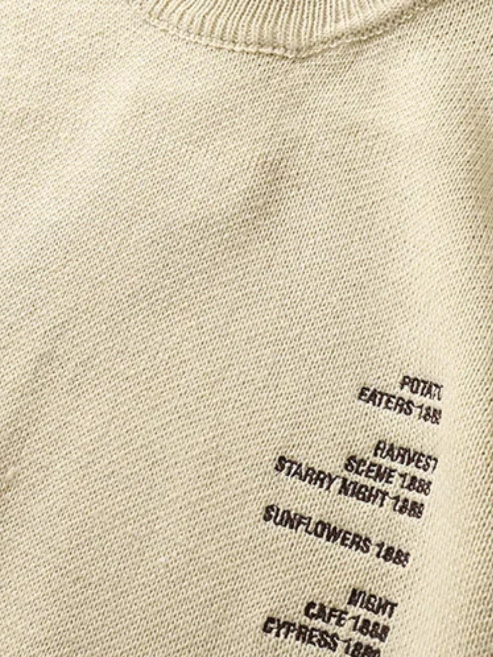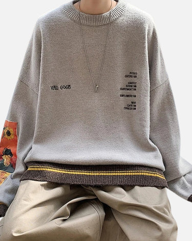 Descubra o suéter oversized Van Gogh 'Doze Girassóis numa Jarra' da Asteric. Disponível em cinza, preto e cáqui, com gola O e manga longa, este suéter unissex em lã apresenta uma estampa exclusiva. Perfeito para adicionar um toque artístico e streetwear ao seu visual. Compre agora!